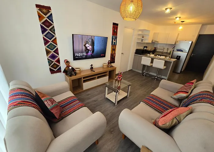 Acogedor Departamento En Cusco, Ideal Para Familias Y Amigos, Equipado Y Centrico apartment is located 16 minutes' walk from Sacred Valley of the Incas and just 10 minutes' stroll from Alpaca-fleece clothing Souvenir Store. This apartment features Wi-Fi throughout the property.
